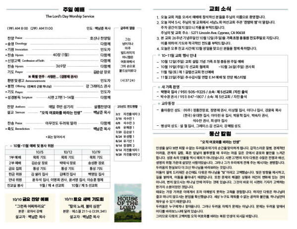 10/05/25 교회 주보 페이지 정보 작성자 아름다운동산교회 댓글 0건 조회 30회 작성일 25-10-04 07:15 목록 본문 10/05/25 다음글09/28/25 교회 주보 25.09.27 댓글 0 댓글목록 등록된 댓글이 없습니다. 목록