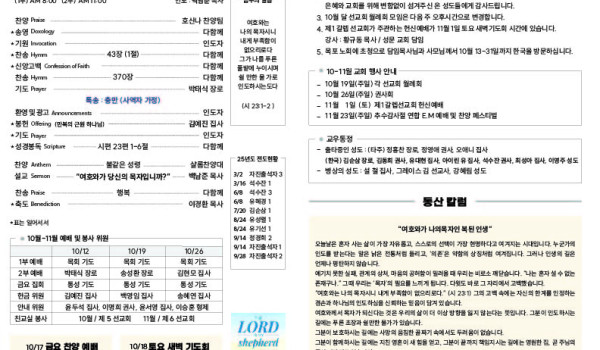 10/26/25 교회 주보