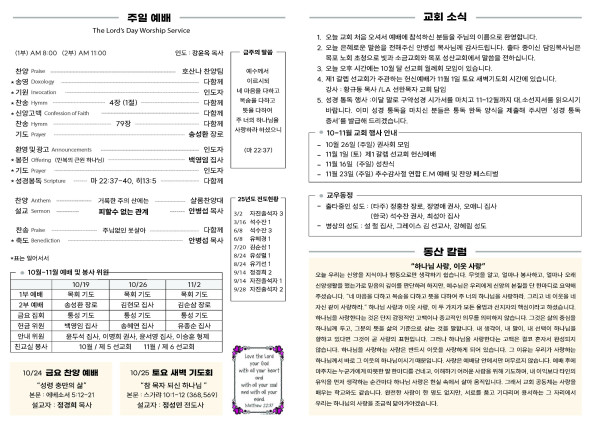 10/19/25 교회 주보 페이지 정보 작성자 아름다운동산교회 댓글 0건 조회 166회 작성일 25-10-25 07:21 목록 본문 10/19/25 교회 주보 이전글10/26/25 교회 주보 25.10.25 다음글10/12/25 교회 주보 25.10.11 댓글 0 댓글목록 등록된 댓글이 없습니다. 목록