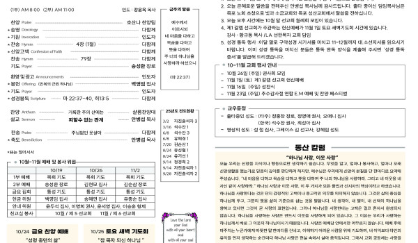 10/26/25 교회 주보
