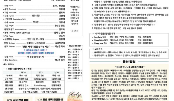 11/16/25 교회 주보