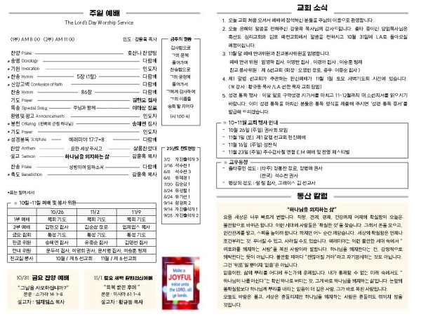 10/26/25 교회 주보 페이지 정보 작성자 아름다운동산교회 댓글 0건 조회 192회 작성일 25-10-25 07:22 목록 본문 10/05/25 교회 주보 이전글11/02/25 교회주보 25.11.01 다음글10/19/25 교회 주보 25.10.25 댓글 0 댓글목록 등록된 댓글이 없습니다. 목록